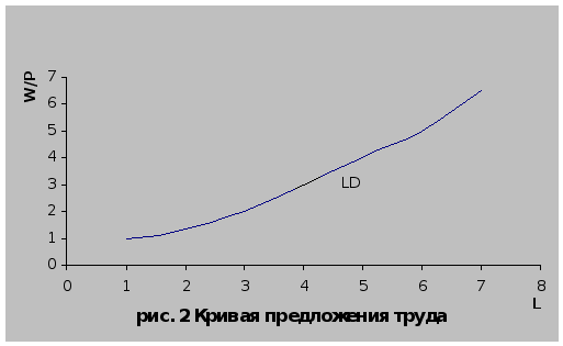 L – величина требующегося труда; W/P – величина реальной заработной платы Источник: «Курс экономической теории» под редакцией Чепурина М.Н., с. 235