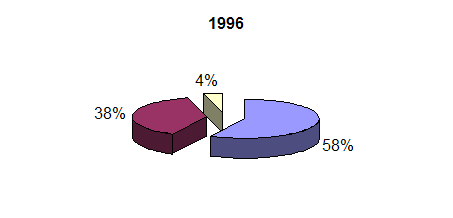 Виконані розрахунки дозволяють зробити висновок про те, що поряд із збільшенням отриманих доходів як в цілому, так і по окремих видах діяльності, за період з 1996 по 1999 рік, намітились істотні зміни в структурі валових доходів підприємства. Зокрема, частка доходів від бартерних операцій зросла майже у півтора рази. Ці зміни в структурі валових доходів наочно можна побачити у приведеному графіку (рис. 2.)
