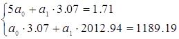 Розв’язавши цю систему, маємо: a0 = - 0.02 a1 = 0.59 Коефіцієнт тісноти зв’язку знайдемо за формулою: