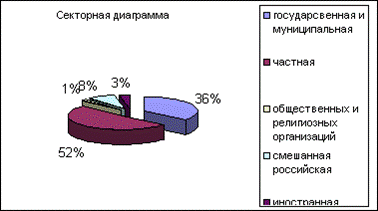 2) Распределение численности занятых по формам собственности. (в процентах) Таблица3