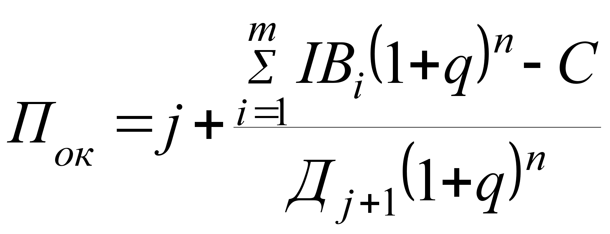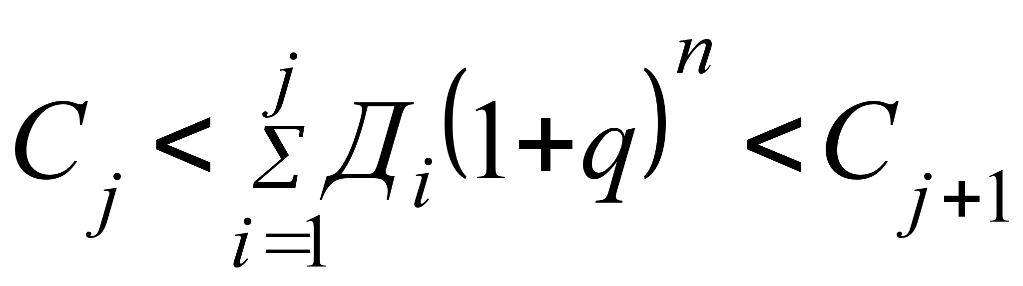 Підсумовуємо послідовні члени ряду доходів Ді, дисконтовані за ставкою q (суму позначимо через Сj), поки не буде знайдено суму, що дорівнює обсягу інвестицій: