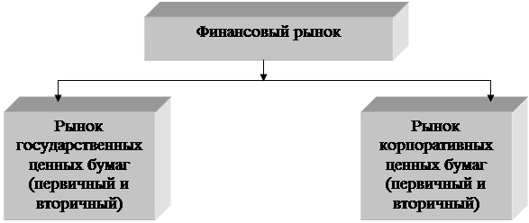Рис 5. Финансовый рынок. Разграничение финансовой системы на отдельные звенья обусловлено различиями в задачах каждого звена, а также в методах формирования и использования централизованных и децентрализованных фондов денежных средств. Общегосударственные централизованные фонды денежных ресурсов создаются путем распределения и перераспределения национального дохода, созданного в отраслях материального производства. Важная роль, которую выполняет государство в области экономического и социального развития, приводит к необходимости централизации в его распоряжении значительной части финансовых ресурсов. Формами их использования являются бюджетные и внебюджетные фонды, за счет которых обеспечиваются потребности государства в решении экономических, политических и социальных проблем. Иные формы и методы образования и использования денежных фондов применяются кредитными и страховыми звеньями финансовой системы. Децентрализованные фонды денежных средств образуются из денежных доходов и накоплений самих предприятий. Несмотря на разграничение сферы деятельности и применение особых форм и способов образования и использования денежных фондов в каждом отдельном звене, финансовая система является единой, так как базируется на едином источнике ресурсов всех звеньев данной системы. Основой единой финансовой системы являются финансы предприятий, поскольку они непосредственно участвуют в процессе материального производства. В ходе предпринимательской деятельности коммерческих организаций и предприятий возникают определенные финансовые отношения, связанные с организацией производства и реализацией продукции, оказанием услуг и выполнением работ, формированием собственных финансовых ресурсов и привлечением внешних источников финансирования, их распределением и использованием. Итак, финансы предприятий и организаций – это финансовые или денежные отношения, возникающие в ходе предпринимательской деятельности в процессе формирования собственного капитала, целевых фондов денежных средств, их распределения и использования. Финансовые отношения предприятий и организаций строятся на определенных принципах, связанных с основами хозяйственной деятельности. Принцип хозяйственной самостоятельности. Он не может быть реализован без самостоятельности в области финансов. Хозяйствующие субъекты независимо от формы собственности самостоятельно определяют сферу экономической деятельности, источники финансирования, направления вложения денежных средств с целью извлечения прибыли. Рынок стимулирует предприятия и организации к поиску новых сфер приложения капитала, созданию гибких производств, соответствующих потребительскому спросу. Предприятия и организации с целью получения дополнительной прибыли могут осуществлять финансовые инвестиции краткосрочного и долгосрочного характера в форме приобретения ценных бумаг других предприятий, государства, участия в формировании уставного капитала других хозяйствующих субъектов. Однако о полной хозяйственной самостоятельности говорить нельзя, так как государство регламентирует отдельные стороны их деятельности. Так, законодательно устанавливаются взаимоотношения предприятий и организаций с бюджетами разных уровней. Предприятия и организации всех 