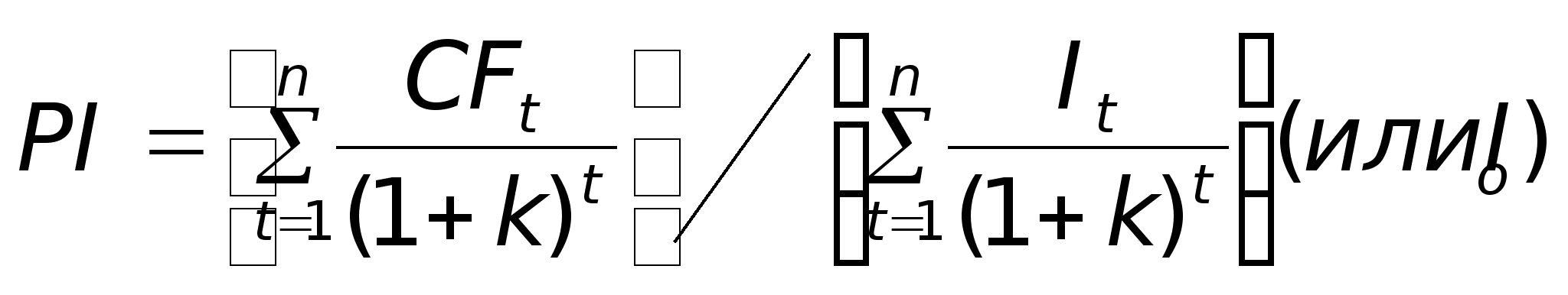 Преимущества критериев дисконтирования • учитывается альтернативная стоимость используемых ресурсов; • в расчет принимаются реальные денежные потоки, а не условные бухгалтерские величины, т.е. оценка инвестиционных проектов проводится с позиции инвестора и не зависит от учетной политики: • оценка инвестиционньгх проектов производится исходя из цели обеспечения благосостояния собственника предприятия- акционера. Недостатки критериев дисконтирования (проистекают из исходных предположений): • повышение акционерной стоимости фирмы- не единственная цель предприятия (кроме того, существуют маркетинговые, социальные, научно-технические, психологические и другие цели), следовательно, ограничиваться искючительно финансовыми критериями нельзя: в дополнение к ним в системе контроллинга должны использоваться и другие критерии, оценивающие факторы психологического, социального, научно-технического плана; • менеджеры не всегда действуют рационально и не всегда стремятся к этому; цели менеджеров не всегда совпадаютс целями фирмы; •некоторые из используемых ресурсов трудно оценить в денежном выражении (например, такие, как время высококвалифицированных сотрудников). 2. Метод рентабельности инвестиций- расчитывается индекс прибыльности PI.