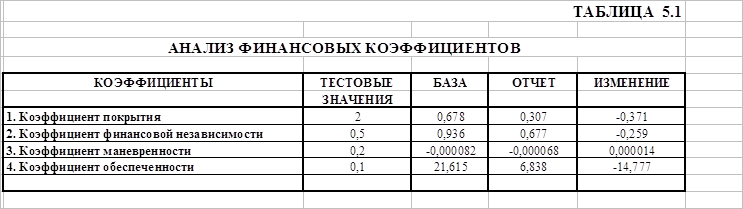 Общее отклонение потребности в основных фондах равно абсолютному отклонению изменению потребности в основных фондах в таблице 4.3, а значит, изменение потребности в основных фондах за счет изменения объема продукции и за счет изменения фондоемкости основных фондов были посчитаны правильно. 5. Анализ финансового состояния Анализ финансового состояния строительной организации выполняется на основе квартального ( годового) баланса, форма №1, форма №2, отчет о движении капитала и другие формы отчетности. Задачей методики анализа финансового состояния является исследование показателей его финансовой устойчивости через финансовые коэффициенты.