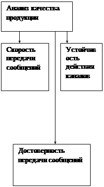 Рисунок 2 – Схема анализа объема продукции, и ее качества. Выводы: проведенный анализ объема продукции в натуральном выражении показывает, что за анализируемый период наблюдается снижение объема продукции по всем показателям, за исключением посылок, где не произошло никаких изменений. Натуральный показатель нельзя использовать в качестве свободного измерителя продукции предприятия связи в целом, поэтому он применяется только для измерения однородной продукции. Для анализа объема продукции в целом по предприятию используется свободный измеритель в денежном выражении. При таком анализе объема продукции можно учитывать, что на объем оказывают влияния цены на продукцию связи. Чтобы устранить влияние цен; анализ динамики объема продукции в денежном выражении нужно осуществлять в сопоставимых целях, т.е. на основе неизменных цен. 2.1.3 Анализ качества продукции связи районного узла связи Качество продукции связи – это совокупность свойств продукции, обуславливающих ее пригодность удовлетворять определенные потребности в соответствии с ее назначением. К качеству продукции связи предъявляют следующие требования: скорость предоставления услуг связи, точность и четкость их выполнения, устойчивость, регулярность и непрерывность работы средств связи. При анализе качества продукции связи обычно применяют метод сравнения. 2.1.4 Анализ тарифных доходов узла связи Задача анализа - выявить причины и факторы, влияющие на изменение доходов предприятия, изыскания дополнительных доходов и резервов для их роста.