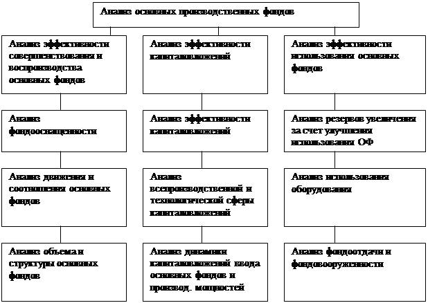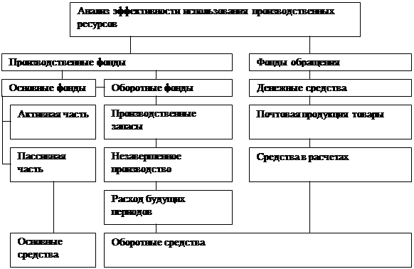 Анализ использования основных производственных фондов проводится с целью повышения эффективности производства и дальнейшего улучшения качества работы для более полного удовлетворения потребностей населения и народного хозяйства в услугах связи. Задача анализа использования основных фондов состоит в том, чтобы дать оценку результатов выполнения плана и темпов роста основных производственных фондов и показателей их использования, изучать структуру фондов, выполнить резервы улучшения их использования. В результате анализа должны быть разработаны мероприятия, направленные на устранение выявленных недостатков и более. Структура производственных ресурсов
