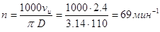 n=1000Vи /pD = 1000×218/3.14×60=1157 мин-1 .