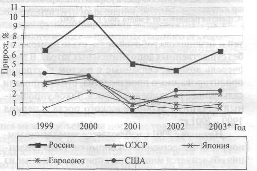 в основной Начиная с 2001 г. наблюдается замедление темпов роста отечественной экономики. Такая тенденция объясняется множеством причин, основные из которых следующие. Во-первых, замедление темпов промышленного развития, обусловленное в том числе и ростом издержек производства.