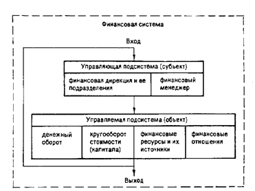 Рис. 1. Общая схема финансового менеджмента. Объектом управления в финансовом менеджменте является совокупность условий осуществления денежного оборота, кругооборота стоимости, движения финансовых ресурсов и финансовых отношений между хозяйствующими субъектами и их подразделениями в хозяйственном процессе. Субъект управления - это специальная группа людей (финансовая дирекция как аппарат управления, финансовый менеджер как управляющий), которая посредством различных форм управленческого воздействия осуществляет целенаправленное функционирование объекта. Во-первых, любой объект управления, любой процесс представляют собой систему. Под системой понимается совокупность взаимодействующих элементов, составляющих целостное образование, финансовая система входит в социально-экономическую систему. Главным свойством социально-экономической системы является то, что в ее основе лежат интересы людей. Совокупность общественных, коллективных и личных интересов влияет на состояние системы и процесс ее развития. Любая система состоит из элементов. Под элементом системы понимается такая подсистема, которая в условиях данного исследования (наблюдения и его цели) представляется неделимой» не подлежит дальнейшему расчленению на составляющие. Следовательно, элемент всегда является структурной частью любой системы. Например, финансовая система в целом в качестве элемента системы включает финансовые фонды (денежные, основные, оборотные фонды, фонды обращения, уставный капитал). Для финансов хозяйствующего субъекта в качестве неделимого элемента системы рассматриваются финансы структурного подразделения этого субъекта. Для финансов подразделения хозяйствующего субъекта в качестве неделимого элемента системы рассматриваются финансовые ресурсы. Каждому элементу присущи различные свойства. Основными свойствами элемента системы являются следующие. 1. Элемент системы выполняет только ему присущую функцию, которая не повторяется другими элементами данной системы. 3. Элемент обладает способностью взаимодействовать с другими элементами и интегрировать с ними. Это является признаком целостности системы. 3. Элемент тесно связан с другими элементами своей системы. Свойства элементов финансовой системы позволяют вывести общее правило финансового менеджмента: всегда надо стремиться к финансовой устойчивости системы в целом, а не тех или иных ее элементов, подсистем. Во-вторых, воздействие субъекта на объект управления, т.е. сам процесс управления, может осуществляться только при условии циркулирования определенной информации между управляющей и управляемой подсистемами. Процесс управления независимо от его конкретного содержания всегда предполагает получение, передачу, переработку и использование информации. В-третьих, финансовая система является сложной, динамичной и открытой системой. Сложность финансовой системы определяется неоднородностью составляющих элементов, разнохарактерностью связей между ними, структурным разнообразием элементов. Это вызывает многообразие и различие элементов системы, их взаимосвязей, тенденций, изменений состава и состояния системы, множественность критериев их деятельности. Динамичность финансовой системы обусловливается тем, что она находится в постоянно меняющейся велич