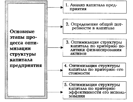 Рис. 11. Содержание основных функций торгового менеджмента по управлению капиталом. Оптимизация структуры капитала. Процесс оптимизации финансовой структуры капитала торгового предприятия осуществляется по следующим основным этапам (рис. 12).