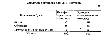 Табл. 1. Структура портфелей разных инвесторов. 4. Выбрать схему дальнейшего управления портфелем. При этом возможны следующие варианты. Первый вариант. Каждому виду ценной бумаги отводится определенный фиксированный вес в общей корзине, который остается постоянным в течение последнего времени. В связи с тем, что на фондовом рынке происходят колебания курсовой стоимости ценных бумаг, необходимо периодически пересматривать состав портфеля таким образом, чтобы сохранить выбранные соотношения различных инвестиционных ценностей. Второй вариант. Инвестор придерживается гибкой шкалы весов ценных бумаг в общей корзине. Первоначально портфель формируется исходя из определенных весовых соотношений между ценностями. В дальнейшем они пересматриваются в зависимости от результатов анализа финансовой ситуации на рынке и ожидаемых изменений конъюнктуры спроса. Третий вариант. Инвестор активно использует фьючерсные контракты с индексами для изменения состава портфеля. Фьючерс, или фьючерсный контракт, - это двухсторонний договор, по которому покупатель обязуется принять, а продавец поставить указанное в контракте количество продукции по цене, установленной при заключении сделки на определенную будущую дату. Использование фьючерсов удобно при управлении большими портфелями. Они применяются прежде всего институционными инвесторами. Например, финансовый менеджер пришел к выводу, что необходимо увеличить в портфеле долю облигаций. Тогда он продает фьючерсный индексный контракт с акциями и покупает фьючерсный индексный контракт с облигациями. С течением времени могут меняться инвестиционные цели вкладчика, что ведет к изменению состава портфеля. Пересмотр портфеля сводится к определению соотношения доходности и риска входящих в него бумаг. По результатам анализа принимается решение о возможной продаже какой-либо инвестиционной ценности. Ценная бумага, как правило, продается, если: она не принесла ожидаемый доход и нет надежды на его рост в будущем; она выполнила возложенную на нее функцию; появились более эффективные пути использования финансовых средств. При покупке акций и облигаций одного акционерного общества инвестору следует исходить из принципа финансового левериджа. Финансовый лсверидж (англ. leverage -средства для достижения цели) представляет собой соотношение между облигациями и привилегированными акциями, с одной стороны, и обыкновенными акциями - с другой. О + А1 Л = ------------------- , А2 где Л - уровень левериджа; О - облигации, руб.; А1 - привилегированные акции, руб.; А2 - обыкновенные акции, руб. Финансовый леверидж является показателем финансовой устойчивости акционерного общества, что отражается и на доходности портфельных инвестиций. Высокий уровень левериджа - явление опасное, так как ведет к финансовой неустойчивости. Аннуитет. Аннуитет (нем. anriuitat - ежегодный платеж) - инвестиции, приносящие вкладчику определенный доход через регулярные промежутки времени, обычно после выхода на пенсию. В основном это вложение средств в страховые и пенсионные фонды. Страховые компании и пенсионные фонды выпускают долговые обязательства, которые их владельцы хотят использовать на покрытие непредвиденных расходов в будущем. Страхование жизни проводится на случай преждевременной смерти для того, чтобы обеспечить финансовую б
