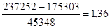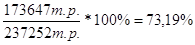 Порог рентабельности = Постоянные затраты / Валовая маржа (в относительном выражении. к ВРП) = 16601 тыс. руб. / 0,261 = 63605 тыс. руб. Запас финансовой прочности = 237252 – 63605 = 173647 тыс. руб. Запас финансовой
