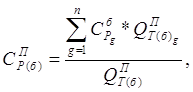 5) Определение себестоимости товарной продукции (СТ П ) и объема товарной продукции (QТ П ) планового года в ценах и условиях этого года производится путем корректировки соответствующих показателей на изменение цен и условий производства: СТ П = С( б) П + DЦМ , тыс. руб. (13) QТ П = Q( б) П + DЦQТ , тыс. руб. (14) 6) Определение плановых затрат на 1 рубль товарной продукции планового года в сопоставимых с базовым годом ценах на товарную продукцию (С"Р( б)) и изменение этих затрат по сравнению с базовым годом (Р"ср ) определяется по формулам: С"Р( б) = С"Т / QТ( б) П, коп. / руб. (15) Р"ср = [(С"Р( б) – СР б) / СР б] * 100, % (16) 7) Затраты на 1 рубль товарной продукции в ценах и условиях планового года определяются по формуле: СР П = СТ П / QТ П, коп. / руб. (17) 8) Изменение затрат на 1 рубль товарной продукции в плановом году по сравнению с базовым производится по формуле: Рср = [(СР П - СР б) / СР б] * 100, % (18) Заключение Приложение 1 Расчет влияния изменения структуры продукции на себестоимость товарной продукции