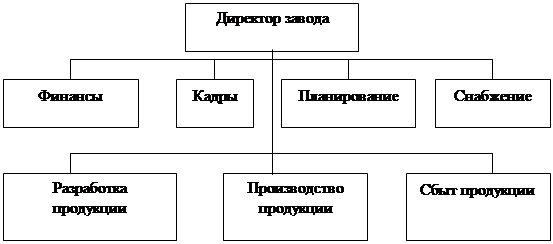 Рис.1. Схема традиционной организационной структуры. Прохождение организацией этапа, соответствующего использованию традиционных структур, обязательно. Этот период может быть коротким или длинным, но «перепрыгивание» через него лишает организацию возможности отработки отношений «начальник – подчиненный» и выведения их на уровень, когда внешняя среда потребует использования более сложных и эффективных структур. Более сложной разновидностью линейно-функциональной организационной структуры является дивизиональная структура. Дивизиональная организация возникает тогда, когда за основу разделения берется какой-либо конечный результат: продукт, потребитель или рынок. Поэтому данная структура широко используется в условия многопродуктового производства или в многонациональных компаниях, где территориальная разобщенность вынуждает автономизировать региональные отделения. Также широко она используется в построении государственного аппарата и общественных организаций. Президент концерна «Дженерал моторз» А. Слоун определил дивизиональную структуру как «скоординированную децентрализацию». Высший уровень в организации централизует планирование и распределение основных ресурсов, принимает стратегические решения, в то время как подразделения принимают оперативные решения и ответственны за получение прибыли. Дивизиональная структура имеет большие преимущества в различных отраслях промышленности. Особенно эффективна она там, где производство слабо подвержено колебаниям рыночной конъюнктуры и мало зависит от технологических нововведений. В целом дивизиональная структура организации позволяет последней продолжать свой рост и эффективно управлять разными видами деятельности на разных рынках. Руководители производственных отделений координируют деятельность не только «по линии», но и «по функциям» и развивают тем самым в себе требуемые качества общего руководства, создавая хороший кадровый резерв для стратегического уровня организации. Разделение решений по уровням ускоряет их принятие и повышает качество. Недостатком дивизиональной структуры является «укорачивание» целей внутри производственных отделений, возникающее из-за быстрого метода обратной связи в виде денежной компенсации и системы бонусов. Рост управленческого аппарата за счет отделений увеличивает накладные расходы. Так как главные ресурсы централизованы, в случае их недостатка возникает возможность конфликта между отделениями. В больших дивизиональных организациях затруднена межотделенческая карьера. 1.3.2. Программно-целевая (матричная) структура. Цель программно-целевой структуры – устранение проблем, повторяющихся в процессе координации деятельности функциональных звеньев (органов).
