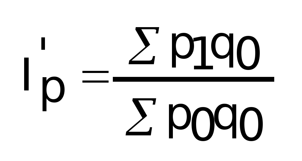 Индекс цен Ласпейреса – это средняя арифметическая из индивидуальных индексов, взвешанных по стоимости базового периода или удельному весу. 3. Индекс цен Пааше а) Индивидуальный индекс цены ip