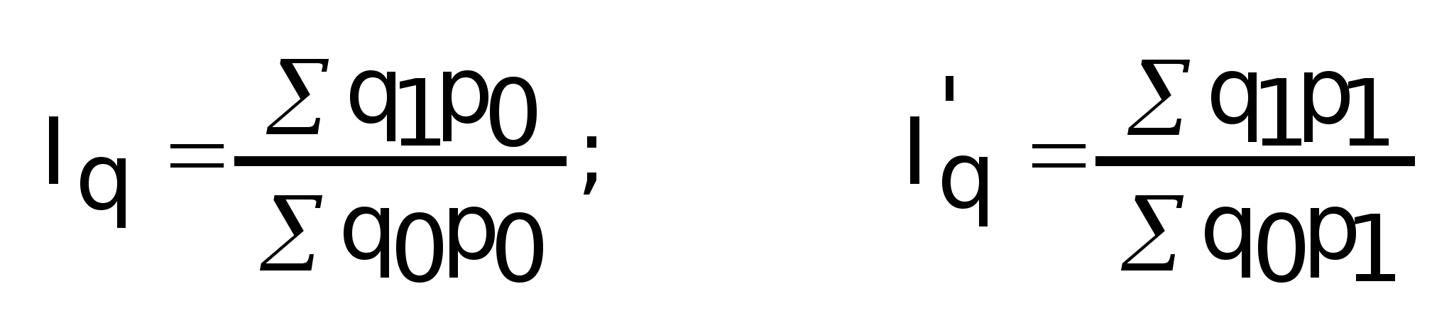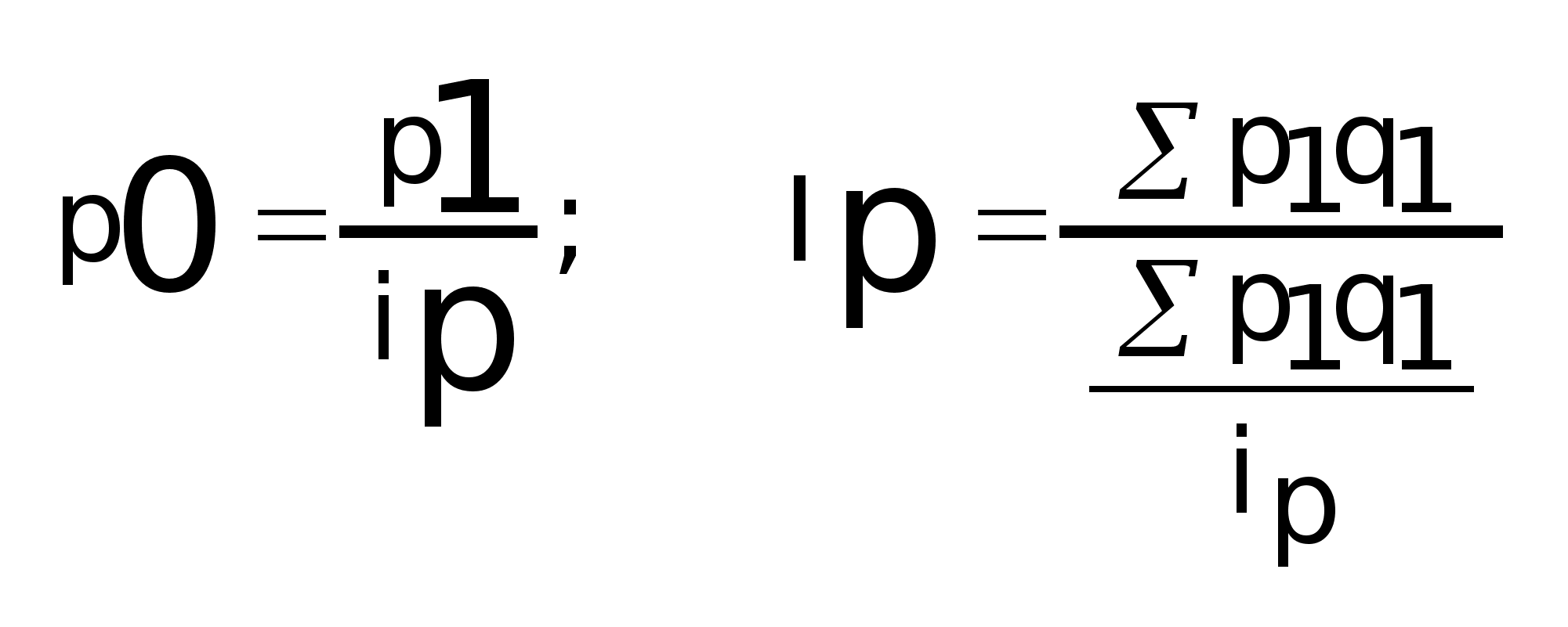 Расчет индивидуальных индексов ведется по формулам: ip