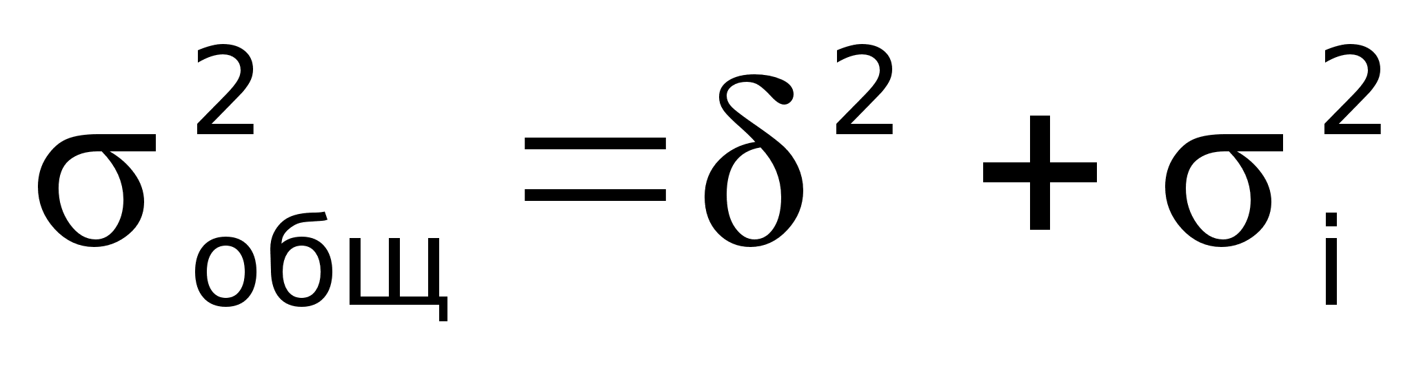 Эти дисперсии находятся в определенном соотношении. Общая дисперсия равна сумме межгрупповой и средней из внутригрупповых дисперсий: