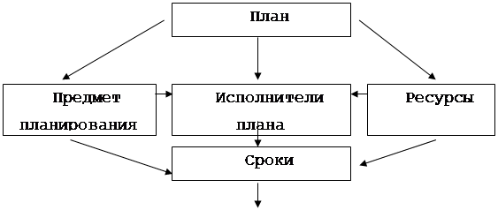 Рис.1.1. Связь ресурсов и времени. Чтобы не отстать от своих конкурентов, каждая независимая производственная организация должна тщательно планировать перспективу развития собственного производства и потребностей рынка минимум на 2-3 года. Любые просчеты при этом грозят убытками и даже полным разорением. Предприятию необходимо предусматривать перспективу до мелочей по каждому этапу, начиная с проекта изделия, разработки технологии, опытно-экспериментальных работ и заканчивая запуском, а затем и прекращением производства старых изделий и выходом на рынок с новой продукцией. Все должно быть увязано с экономикой внутри предприятия, налоговой системой и кредитной ситуацией, положением на рынке и намерениями конкурентов, ситуацией за пределами предприятия. Хороший план, по мнению Доила, который составляется обычно на пять лет — одно из главных условий успеха любой фирмы.[12] Выходить на рынок со своей продукцией, не имея продуманного и точно рассчитанного плана действий, — гарантия провала фирмы. 1.2. Планирование и управление предприятием.Переход производственных предприятий в России на условия рынка, полное самоуправление и самофинансирование означает: · самостоятельное обеспечение технического, производственного и социального развития за счет заработанных средств; · полную ответственность за результаты хозяйственной деятельности, за выполнение обязательств перед поставщиками и потребителями, бюджетом и банками; · осуществление внутренней перестройки планирования на основе расширения прав и усиление экономической ответственности филиалов, цехов и отделов предприятий за обеспечение и повышение стабильности их работы; · восприятие прибыли в качестве основы успешной деятельности предприятий, главного обобщающего экономического показателя, источника, обеспечивающего экономическое, научно-техническое и социальное развитие. Устанавливается прямая зависимость между ресурсами, эффективностью работы и доходами, которыми самостоятельно распоряжаются предприятия. Возрастает роль внутрипроизводственного планирования, с помощью которого связывается выпуск продукции на предприятии с потребностями рынка. Знать потребности рынка на перспективу и успеть вовремя доставить на рынок собственную продукцию — главная обязанность руководителей и специалистов предприятия.[24] Планирование производства на предприятии — это точное предвидение и программирование на перспективу хода производственного процесса и его результатов по этапам. В плане с учетом специализации и кооперации труда устанавливаются по датам четкое задание на выполнение конкретного вида и объема работы и расходования ресурсов каждому цеху, отделу, бригаде, рабочему и последовательность выполнения связанных между собой работ. С помощью плана, который всегда устремлен в будущее, на перспективу распределяются имеющиеся ресурсы — материальные, трудовые, финансовые и природные. Планирование — это метод хозяйственного предвидения и программирования, основанный на детальных расчетах. В плане предприятия, с одной стороны, содержится задание на перспективу для каждого работника, а с другой — предписания для руководителей об управленческих решениях, которые они должны поэтапно принимать, помогая коллективу достичь поставленной цели (табл. 1.1). Табл