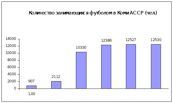 В Таблице 1, наглядно представлен рост популярности футбола на территории Республики Коми. Период с 1920 по 1945 годы можно по праву называть этапом зарождения футбола в Республике Коми. 1.2.История развития футбола в Республике Коми (1946-1990 г.)В 1946 по 1990 год – большой временной отрезок. В эти годы многое произошло в жизни страны. Менялись политические руководители, изменялось экономическая ситуация в стране. Все это имело свое влияние на развитие футбола, как в целом по стране, так и в Коми Республике. Развитие экономики и культуры, повышение материального благосостояния населения республики, способствовало бурному развитию физической культуры и спорта и Коми. В 1945 – 1946 годах бюро Коми обкома ВКП(б) приняло ряд постановлений по вопросам дальнейшего улучшения и развития физкультурной работы в республике. С 1946 года футбол вступает в новую фазу своего развития. Ее можно назвать фазой интенсивного роста популярности и развития футбола на территории Республики Коми. Это период с 1946 по 1990 год. Если сравнивать с предыдущим этапом то можно заметить, что футбол сделал резкий рывок в своем развитии. Такие выводы можно сделать по увеличении числа футбольных команд, а также количества занимающихся футболом на территории Республики Коми. Например, в 1923 году количество официально зарегистрированных команд равнялось одиннадцати, а 1954 году проходили районные и городские первенства по футболу, в которых участвовало свыше ста команд, с общим количеством участников 1500 человек. Популярность футбола в республике все растет. В 1950 году число занимающихся составляло 1346 человек, в 1953 – 1705, в 1958 – 2533. В январе 1951года Совет Министров Коми АССР, принял постановление «о создании спортобщества «Колхозник» во всех колхозах республики». К концу года был создан 181 коллектив физкультуры нового ДСО. В этих коллективах объединилось 4730 сельских физкультурников. Позже, в 1953 – 1954 годах, сельские спортсмены республики были объединены в единое добровольное сельское спортобщество (ДССО) «Урожай». Сельские спортсмены стали постоянными участниками республиканских соревнований по футболу. В после военные годы большие изменения произошли в развитии футбола. Помимо первенств Коми АССР, которые проводились все годы, регулярно стали проводиться первенства областных Советов всех ДСО Коми АССР, а с 1952 года – розыгрыши кубка республики. В годы после окончания Великой Отечественной Войны стали традиционными встречи со спортсменами городов Кирова, Перьми, Свердловска, Вологды, Петрозаводска, Архангельска по футболу. Начиная с 1948 года, футбольные команды Коми АССР, стали ежегодно принимать участие в первенствах РСФСР по северной зоне, в первенствах ЦС ДСО некоторых спортобществ, в матчевых встречах с командами городов и областей Российской Федерации. Например, в 1954 году наши футболисты заняли II место в северной зоне РСФСР и IV место в финале первенства РСФСР. В эти же годы в Коми АССР были организованны крупные ДСО «Шахтер», «Нефтяник», «Локомотив». Ведущим в республике стало спортивное общество «Красное Знамя». Розыгрыши первенства Коми АССР в 1958 году совпал с 60-летием Отечественного футбола. Второй особенностью этого первенства является то обстоятельство, что оно входило в общекомандный зачат IV-й летней спартакиады Коми АССР. Все это значительно повлияло на оживление 