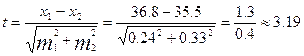 стандартной ошибки среднего арифметического значения (m) по формуле: