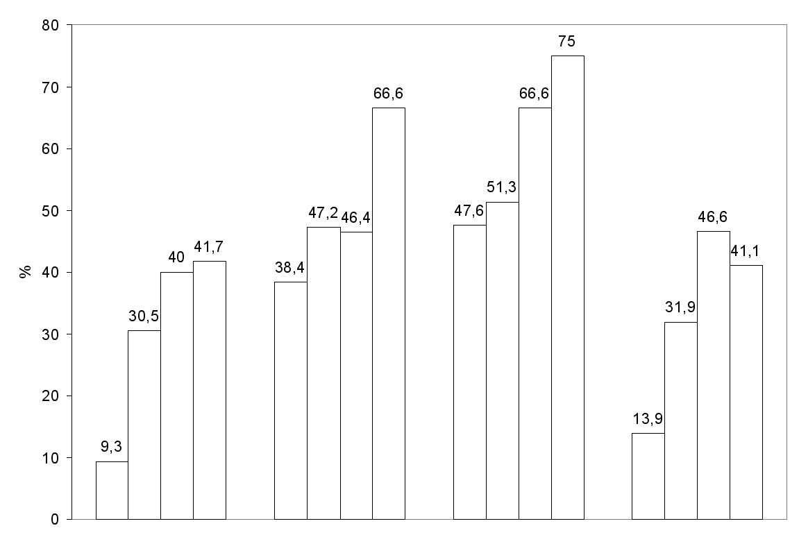 О1 3 2 4 сновные факторы, влияющие на развитие гипертрофии миокарда у спортсменов. По данным Л.И.Левиной. а – очаги хронической инфекции; б – тренировки и выступления в болезненном состоянии; в – перетренировки и переутомления; 2 – 20 и более соревнований в год; 1 – без гипертрофии; 2 – физиологическая стадия гипертрофии; 3 – переходная стадия гипертрофии; 4 – патологическая стадия гипертрофии. П |