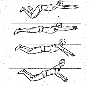 попеременные гребковые движения прямыми руками близко у поверхности воды. Однако его