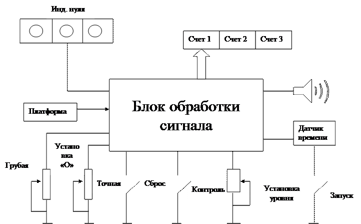 Рис. 3. Блок-схема тензометрической измерительной платформы Прибор работает следующим образом: перед началом работы необходимо с помощью ручек грубой и точной настройки на индикаторе «О» установить «О» моста. Свидетельство готовности к работе свечение светодиода зеленого цвета, в противном случае горит красный. Установив переключателем задатчика времени нужный интервал, необходимо держа в нажатом положении кнопку контроля, с помощью ручки «установка уровня» установить на счетчике 3 (величина одиночной попытки) значение уровня порога. После этого необходимо нажать кнопку сброса. Установить интервал времени работы и нажать кнопку запуск. При ударе значение силы одиночного удара заносится в счетчик 3 и суммирующий счетчик 2 при последующих ударах значения счетчика 3 будет отображать величину одного удара в данной попытке, а счетчик 2 накопленную сумму величины одиночных ударов. Счетчик 1 покажет количество ударов. По прошествии времени прибор прекращает реагировать на удары по платформе. Для повторного запуска необходимо операции, описанные выше. При торировке платформы использовался метод «свободного падения» ядра с высоты 1 м. Импульс ускорения, полученный платформой, определялся высотой падения. При определении линейной характеристики деформации системы падения ядра проводилось с разной высоты, испытания показали достаточно высокую однородность показателей используемой тензоплатформы и линейность получаемых характеристик. Данные представлялись в условных единицах. В первом случае наносили удары три раунда по две минуты, под звук метронома 150 ударов в минуту (стандартная нагрузка). Во втором случае, используя три раунда по две минуты, боксера обязывали нанести возможно большее количество ударов максимальным усилием (интенсивная нагрузка), мы же постарались зафиксировать и количество, и тоннаж наносимых ударов. Для определения среднего коэффициента восстановления была применена следующая формула: А (Г+Д+Е+Ж+3)/(В*К), где А - средний коэффициент восстановления; Г, Д, Е, Ж, 3 - число ударов сердца в первую, вторую, третью, четвертую и пятую минуту восстановления соответственно; В - общее время восстановления (5 мин); К - пульс после разминки. Сила удара на 1 кг веса определялась по формуле: Б= б/(а*и), где Б - сила удара на 1 кг веса; б - тоннаж нанесенных ударов; а - количество ударов; и - весовая категория. Коэффициент выносливости боксера в данном раунде определялся по формуле: X = А/Б, где X - коэффициент выносливости; А - средний коэффициент восстановления; Б - сила удара на 1 кг веса. Общий коэффициент выносливости определялся по формуле: Кобщ = (КЗ/К1+К2+КЗ), где К1, К2, КЗ - коэффициенты выносливости в 1, 2 и 3 раунде соответственно. 2.3. Организация исследованийИсследования проводились с 2003 по 2004 включали в себя следующие два этапа. Первый этап формирование основного направления работы. Теоретический анализ имеющейся литературы и ее обобщение, формирование на этой основе концептуальных подходов к решению выдвинутой гипотезы, поставленных задач и выбор основных методов и методик исследования. Определение предмета и объекта исследования. Второй этап - педагогический эксперимент. В педагогическом эксперименте изучали закономерности развития скоростно-силовой выносливости. Планирование нагрузки проводилось в соответствии с разработ