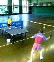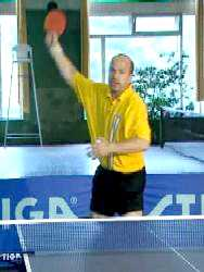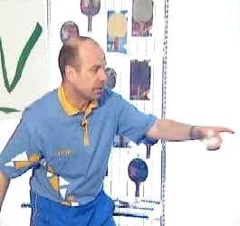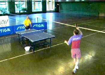 Посылая мяч по высокой траектории, желательно попасть на край стола, говорит Сергей. Если вы играете с правшой, постарайтесь играть глубоко влево. Может показаться, что это ошибка. Ведь как раз сейчас Анатолий Амелин готов именно к удару слева. Но дело в том, что бить свечу слева очень сложно. Для надежности, противник вынужден глубоко смещаться и наносить удар справа. Только справа! А у меня появляется возможность, если, конечно, атака будет не очень сильной, перехватить инициативу и сыграть в практически пустой стол. Предвидя это, Анатолий Амелин переводит игру уже в левый угол Сергея.