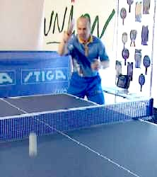 Это действительно очень сложно, говорит Анатолий Амелин. Бить по мячу надо в самой верхней точке отскока и обязательно вкладывать в удар все тело.