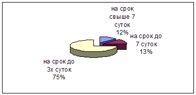 Рис. 10. Характеристика проживающих по целям пребывания Из рис. 11 видно, что на срок до 7 суток в области задерживаются только 12% туристов.