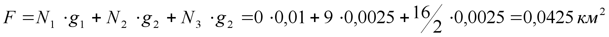 где g1 – площадь (в масштабе карты) 1 см2, равная 0,01 км2; g2 – площадь (в масштабе карты) 0,25 см2, равная 0,0025 км2; N1, N2, N3 – количество квадратов каждого размера, определяемого по рис. 1.1, соответственно равное 104, 39, 69.