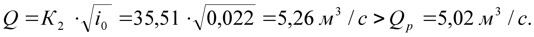 что значительно больше требуемого значения К0 = 497,14 м3/с.