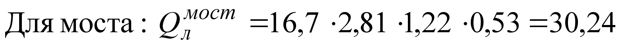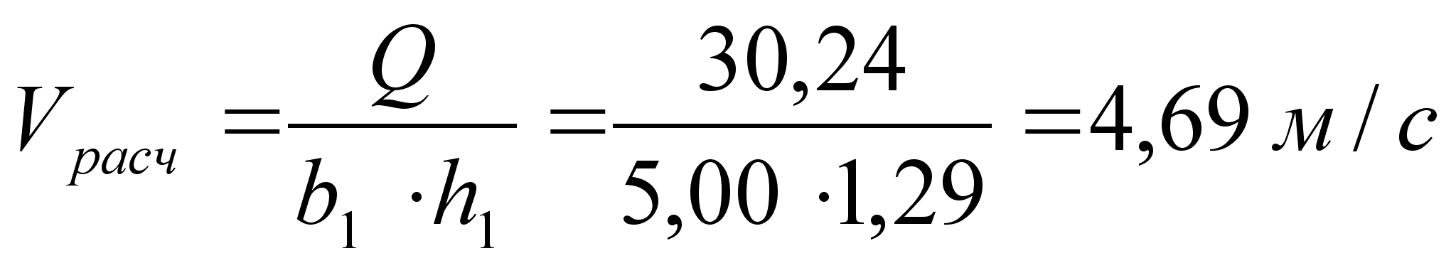 где hстр – строительная высота пролетного строения равная 1,35 м; min – технический запас возвышения низа пролетного строения над уровнем воды, принимаемый равным 1 м при наличии корчехода и селевых потоков и, принимаемый равным 0,50 м во всех остальных случаях. Первый расчетный случай. Исходные данные для расчета: