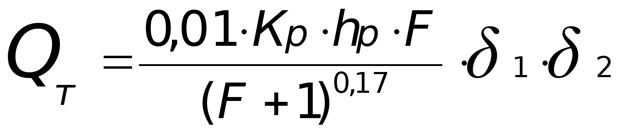 где час – интенсивность ливня часовой продолжительности, определяемая по [2] стр. 222 табл. 15.7, и равная для ВП=3% час=1,35 мм/мин; для ВП=4% час=1,23 мм/мин. Kt – коэффициент перехода от ливня часовой интенсивности к расчетной, определяемый по [2] стр. 223 табл. 15.8, и равный 2,08. F – площадь водосбора, 1,22 км2; коэффициент редукции, вычисляемый по формуле ([2] стр 221):