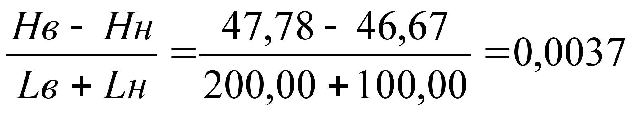 ic= где Нв – отметка точки выше сооружения, равная 47,78 м; Нн – отметка точки ниже сооружения, равная 46,67 м; Lв, Lн – расстояние по тальвегу от сооружения до верхней и нижней точек (рис.1.2), соответственно равные 200,00 и 100,00 м.