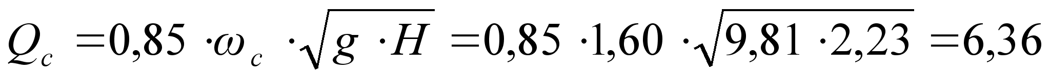 Н=2,23d=1,22,00=2,40 м – условие безнапорного режима соблюдается. Определяем пропускную способность трубы по формуле 15.16 ([2],стр.227):