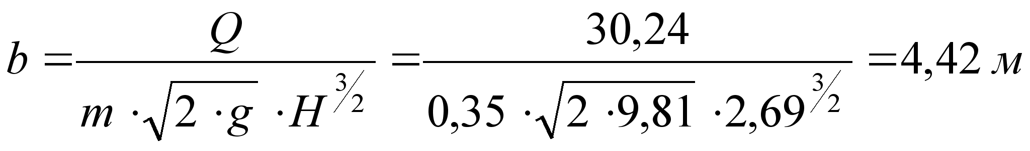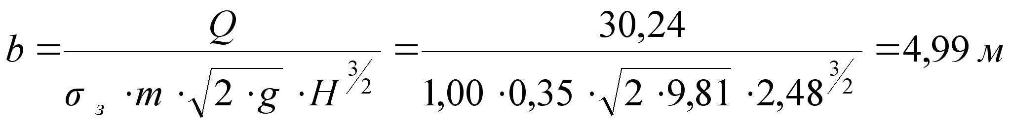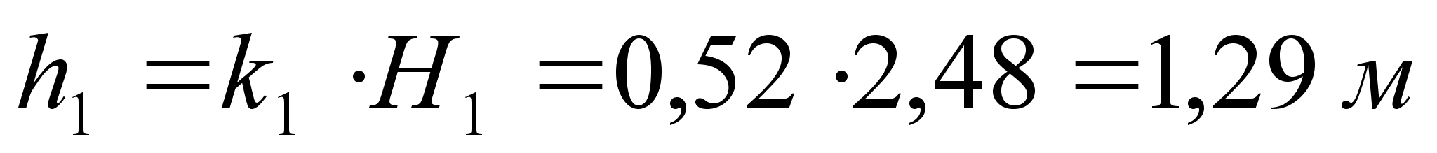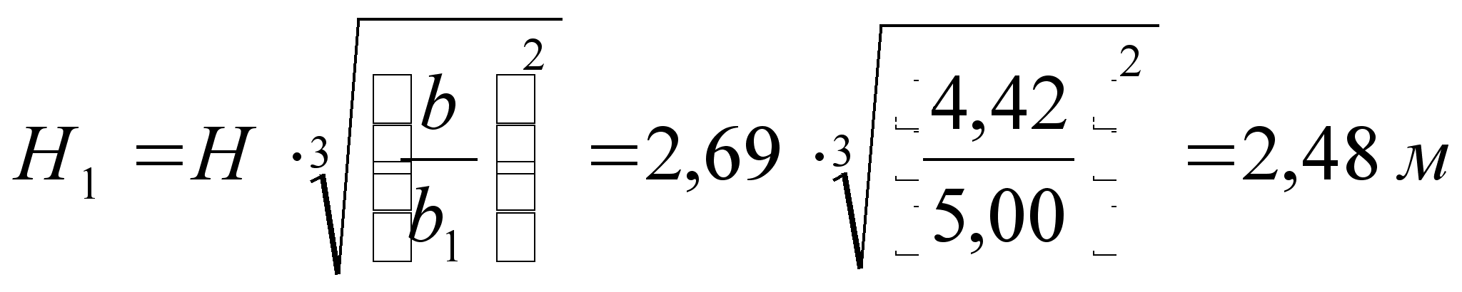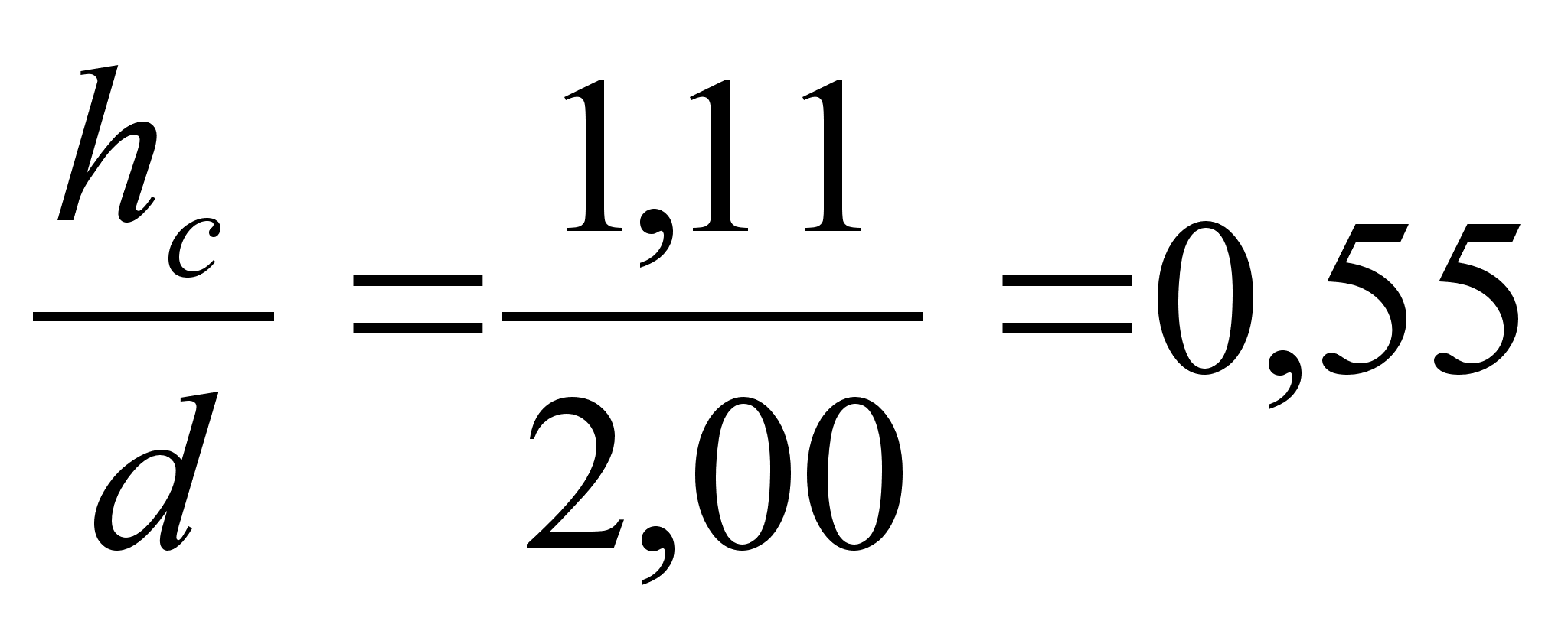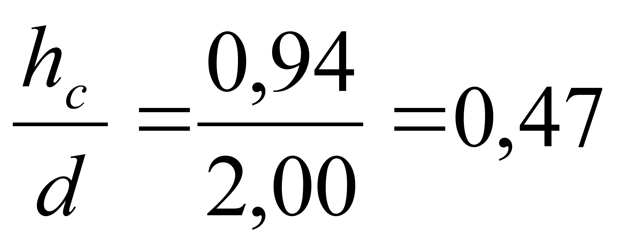 где g – ускорение свободного падения, равное 9,81 м/с2; с – площадь сжатого сечения потока, вычисляемая по рис. 15.13 ([2], стр.228), для чего определяются следующие величины: hc= 0,5H = 0,52,23 = 1,11 м, (3.6) где hc – глубина в сжатом сечении.
