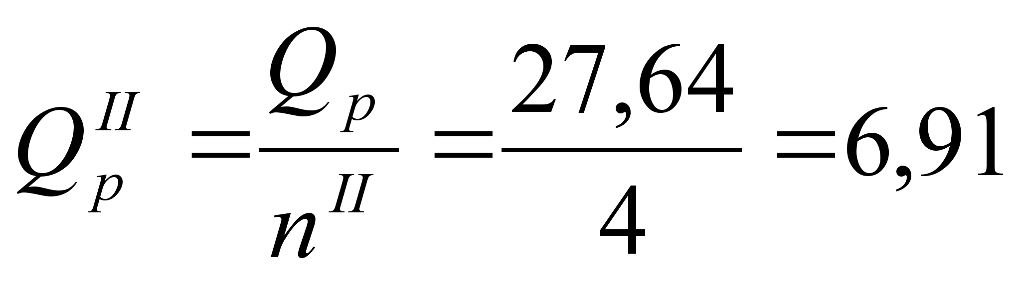 Qp=9,213=27,64 м3/сc=6,363=19,08 м3/с – условие по пропускной способности не выполняется. Необходимо увеличить количество очков, принимаем nII=4. Определяем расчетный расход стока воды, приходящийся на одно очко (см. формулу 3.4):