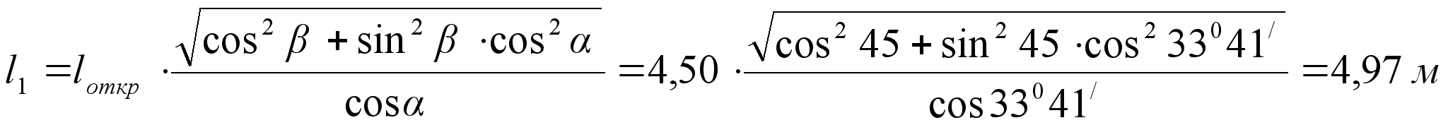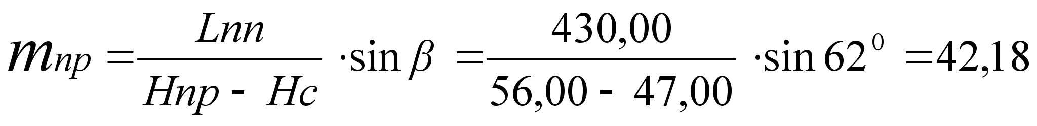 где Lпр – расстояние от правого водораздела до лога сооружения, равное 430,00 м; Нпр – отметка правого водораздела по оси дороги, равная 56,00 м; Нс – отметка лога у сооружения, равная 47,00 м;