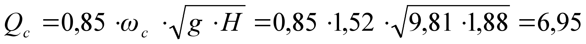 Н=1,88d=1,22,00=2,40 м – условие безнапорного режима соблюдается. Определяем пропускную способность трубы по формуле 15.16 ([2],стр.227):