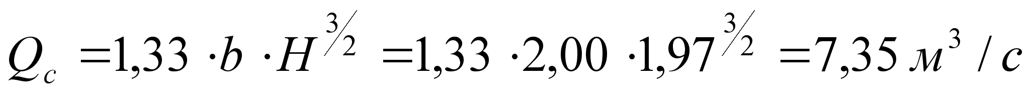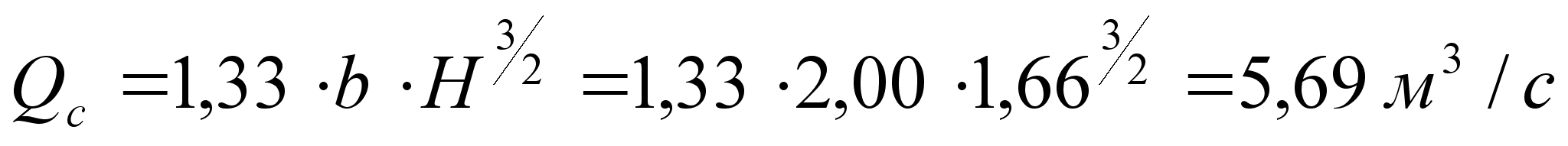где b – ширина трубы, равная 2,00 м; Н – глубина воды перед трубой, равная 1,66 м. Qp=6,914=27,64 м3/сc=5,694=22,76 м3/с – условие по пропускной способности не выполняется.