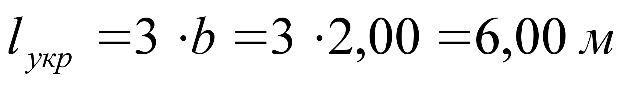 где x – ширина укрепления, равная 1,00 м. Длина укрепления одерновки над входным оголовком будет равна
