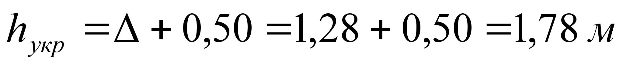 Ширина укрепления Вукр может быть равна ширине спланированного выходного участка В, при этом для труб Вукр =(5…7)d(b). Определим Вукр по прил. 2 курсовой работы: Вукр =11,44 м. Длина участка укрепления перед трубой будет равна: