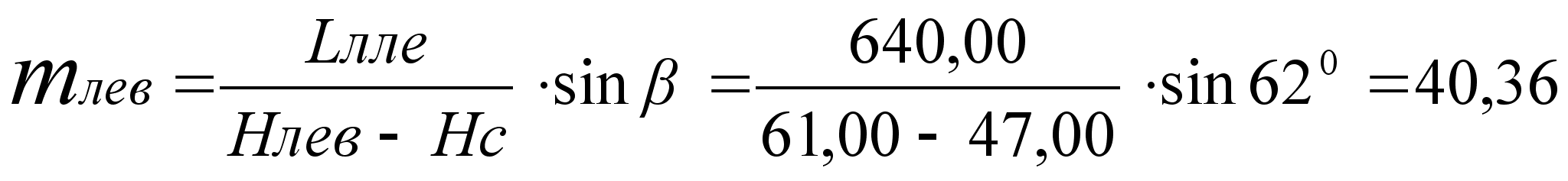 где Lлев – расстояние от левого водораздела до лога сооружения, равное 640,00 м; Нлев – отметка левого водораздела по оси дороги, равная 61,00 м; Нс – отметка лога у сооружения, равная 47,00 м;