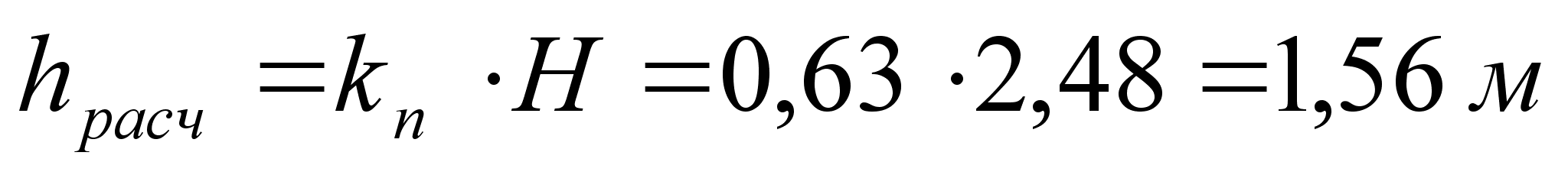 где Ннас – высота существующей насыпи, равная 4,00 м; к – коэффициент, учитывающий снижение кривой подпора во входном сечении, принимаемый равным: