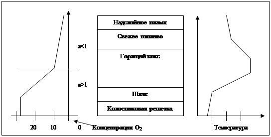 Рассмотрение структуры горящего слоя позволяет составить более детальную картину процесса горения. Под слоем свежего топлива находится горящий кокс. После подогрева поступившего топлива происходит испарение влаги и выделение летучи. Одновременно с выделением летучих образуется кокс, опускающийся в нижний слой взамен выгоревшего в нем кокса. С раскаленных кусочков кокса каплями вниз стекает шлак, затвердевая на колосниковой решётке, откуда периодически его удаляют. В нижней части кокса одновременно образуются оба окисла углерода СО2 и СО. Эту зону называют окислительной зоной. К концу окислительной зоны концентрация кислорода снижается до 1-2%, а СО2 достигает максимума. Над окисленной зоной находится восстановительная зона, в которой кислород практически отсутствует. Углекислый газ здесь взаимодействует с раскаленным углеродом с образованием окиси углерода, что приводит к уменьшению содержимого углекислого газа и увеличению окиси углерода по высоте восстановительной зоны. В восстановительной зоне возможно также эндотермическая реакция разложения водяных паров с образованием еще одного горючего компонента – водорода. Образование горючих газов из топлива (СО, Н) составляет процесс газификации топлива. Температура в окислительной зоне резко возрастает по высоте и достигает максимума там, где наибольшая концентрация СО2. В восстановительной зоне температура меньше чем в окислительной (реакция взаимодействия СО2 с раскаленным С – эндотермическая) [9, 6, 4]. Знание структуры горящего слоя оказывает реальную помощь при проектировании и выборе типа котла для сжигания органического топлива. 6 – Расчет экономических показателей Термический КПД цикла для теплоэлектроцентрали определяется как отношение полезной работы к подведенной теплоте. Поскольку на ТЭЦ значительная часть теплоты используется не для производства механической работы, то и термический КПД при этом снижается. Начальные параметры для расчета технико-экономических показателей ТЭЦ: hТР=71.2%; hПК=63.3%; QС=21100000 кДж; NЭ=550000 кДж; QТУ=1850000 кДж; QТ=490000 кДж; QОПТ=220000 кДж. Коэффициент полезного действия турбоустановки по производству электроэнергии можно записать следующим образом: