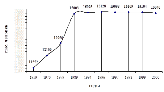 Изменение численности населения Западно-Сибирского района в целом наглядно видно на рисунке 1. Рисунок 1. Динамика численности населения Западно-Сибирского района.