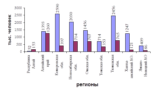 Самым простым показателем, который используется для характеристики распределения населения по территории, является плотность населения. В регионах Западной Сибири эти показатели следующие. Таблица 4. Плотность населения в регионах Западной Сибири на 2000г.
