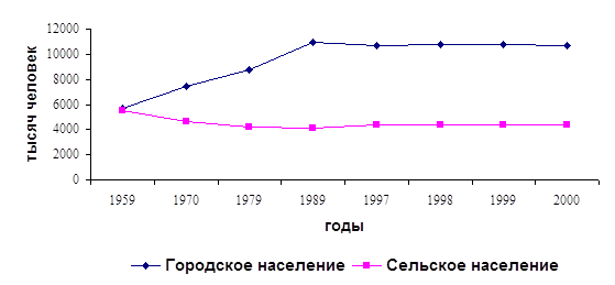 Изменение долей городского и сельского население можно наблюдать на графикеРисунок 6. Динамика численностигородского и сельского населения Западной Сибири.