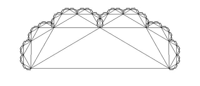 Рис. 1. Фрактальная характеристика эрозионно расчленного рельефа из 7 поколений множества Вследствие фрактального характера процесса эрозионного расчленения, площадь поверхности рельефа можно найти по формуле: